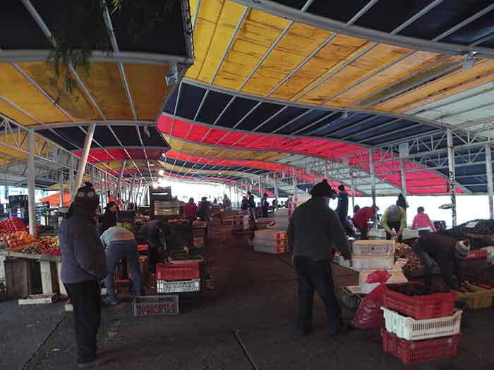 魚市場と果物や野菜市場が細長く向き合っています。