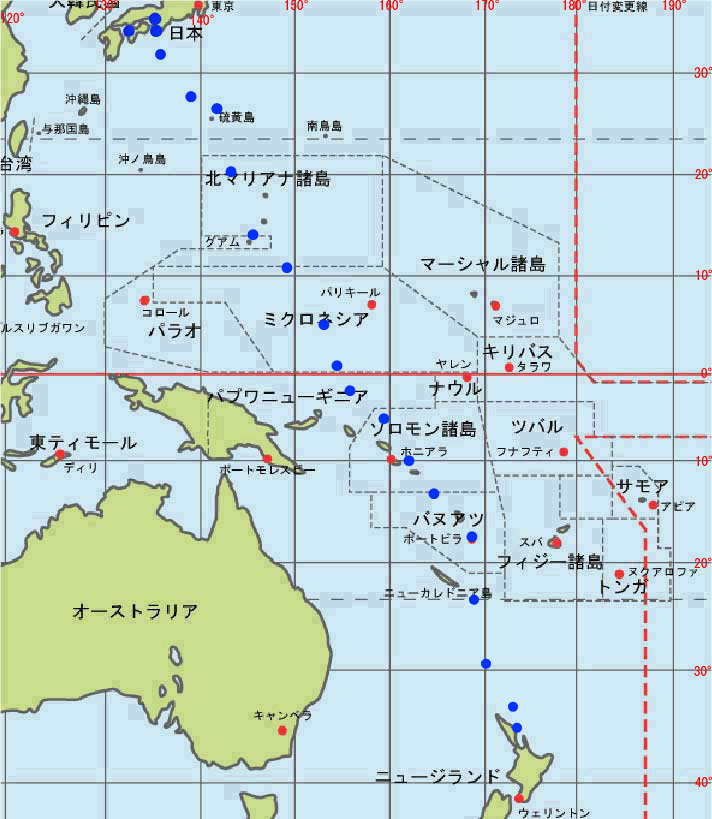 キャロライン諸島を98マイルにみて南下する。 |