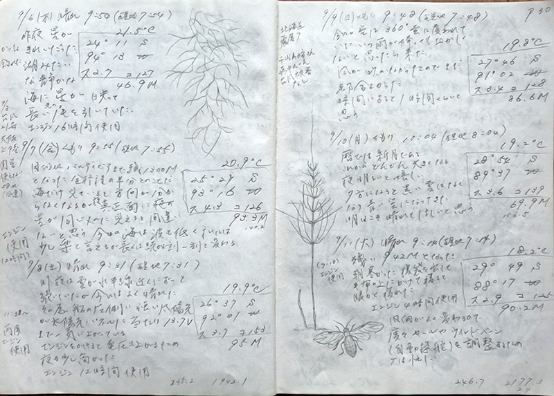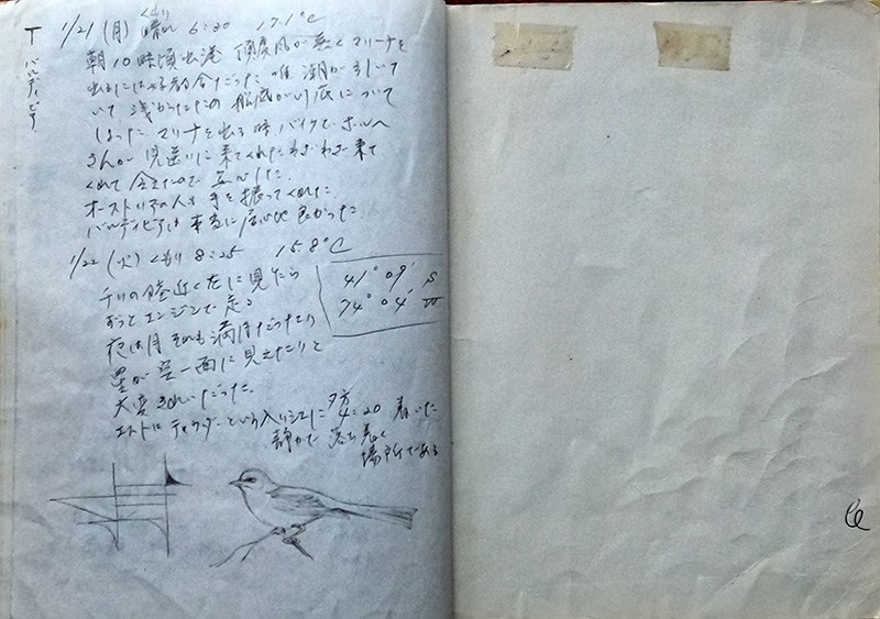 最後の出発前の点検でTはマストに登った 風も吹いていなくて潮も緩やかだったのでよかった